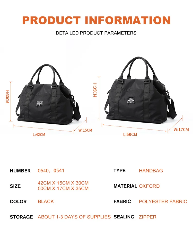 2024 Travel Bag Waterproof Men's Travel Shoulder HandBag Oxford Casual Tote Handbag Fashion Luggage Practical Shoulder Bag