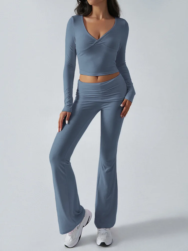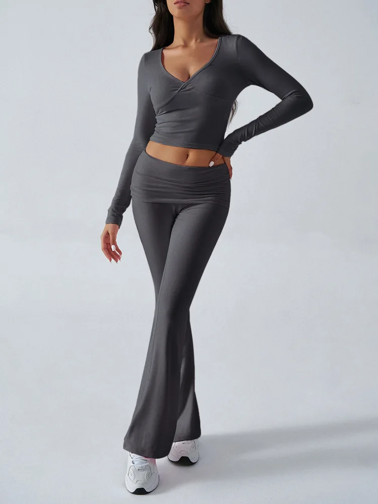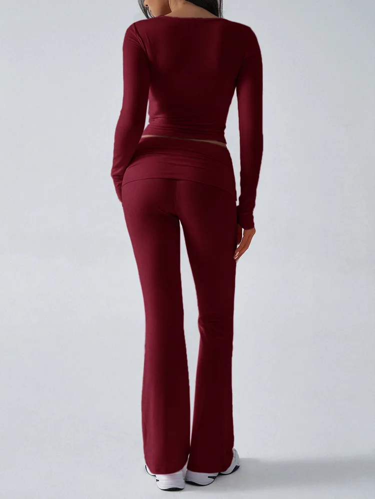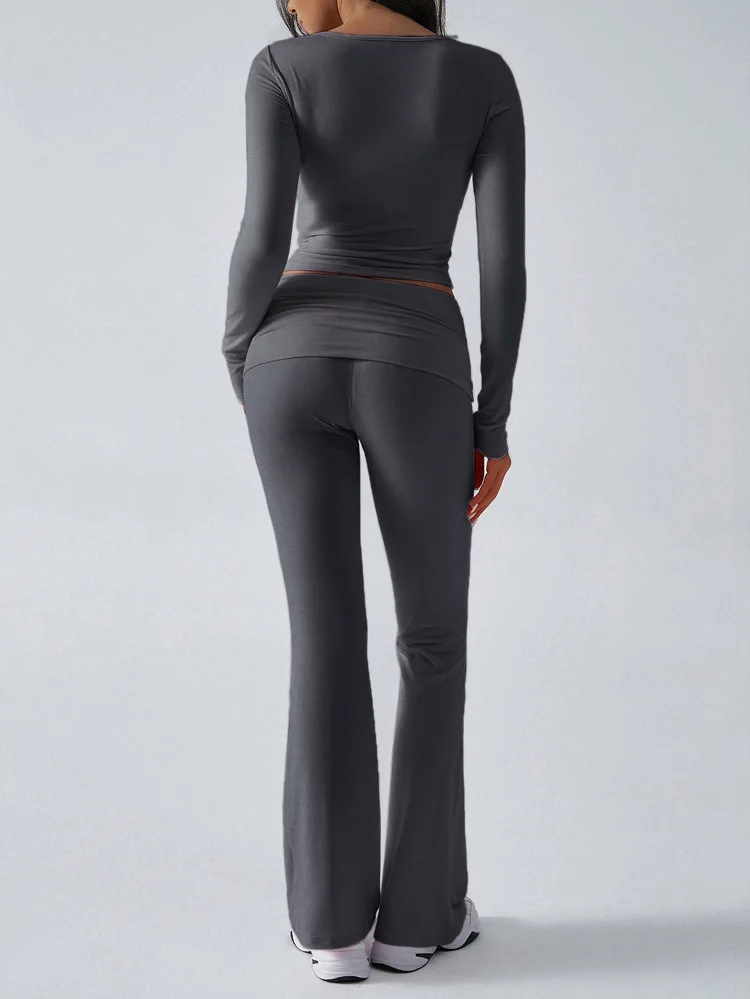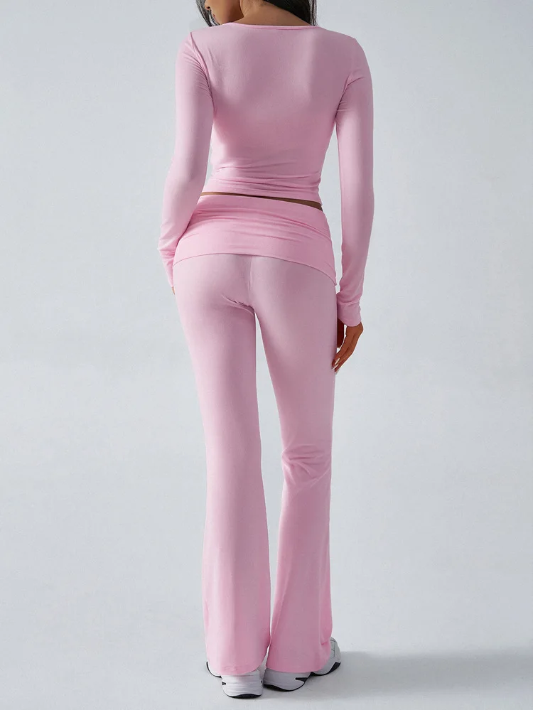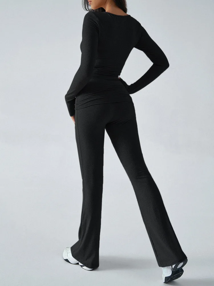 2025 New Women's Casual Sporty Knitted Sleeve Long Pants Set Slim Fit Two Piece Outfit Comfortable Activewear Fashion