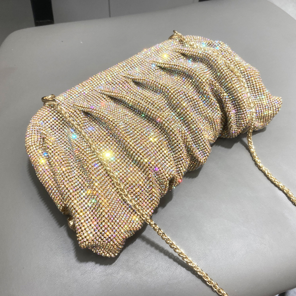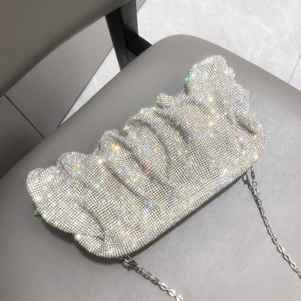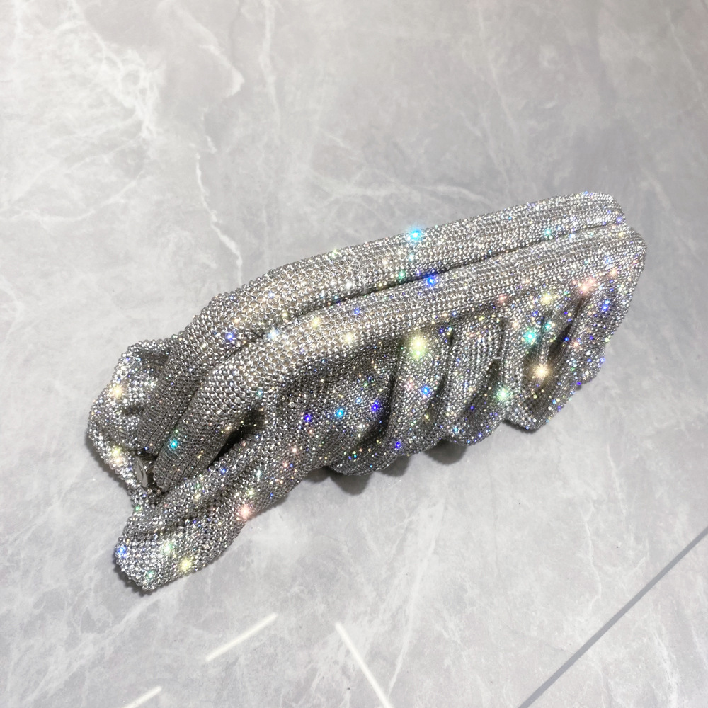 Elevate your evening wear with our stunning Women's Rhinestone Ruffle Clip Evening Bag. This exquisite bag is designed to turn heads and complement any outfit, making it the perfect accessory for special occasions or nights out.